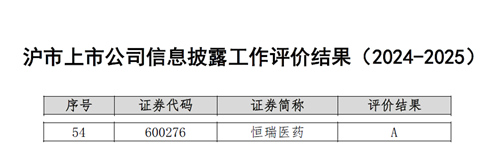 与此同时,在上海交易所公布的2024-2025年度沪市上市公司信息披露工作评价中,z6尊龙官方网站医药再次荣获最高评级——A级。